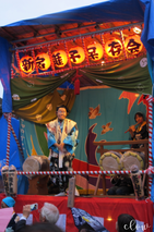 L’évènement phare de Kawagoe est certainement son festival, le troisième week-end d’octobre chaque année, qui anime le Petit Edo d’une ferveur toute particulière. Ce festival remonte à l’année 1648 au cours de laquelle le seigneur du fief de Kawagoe, Nobutsuna Mastudaira Izunokami offrit des artefacts religieux au Sanctuaire Hikawa. Cette offrande fut à l’origine de festivités et de grandes processions. Par la suite, le festival s’est développé selon les us et coutumes d’Edo, organisant notamment de larges parades de char. Les chars ou Dashi, tout de bois, sont montés sur une base de 3 ou 4 roues et sur deux étages. La structure supérieure est extensible grâce à un système d’ascenseur. A l’origine, cette particularité visait à faire passer les chars sous le portail du château. Le plateau de la structure, posé sur sa base peut tourner à 360 degrés. Chaque étage est couvert d’une étoffe brodée d’or et d’argent, agrémentée de couleurs vives. Le plus souvent, la structure est ornée de noir et de rouge. Sur le sommet, une sculpture finement dorée représente un modèle qui fait toute la particularité du char. De part et d’autre, nombreuses sont les lanternes qui s’allument une fois la nuit tombée. Les participants, eux, soulèvent haut le chochin, une lanterne de bambou recouverte de papier précédant le char en poussant des cris de joie et d’encouragement pour les tireurs. Car oui, les chars aussi lourds soient-ils sont tirés à la force des bras.
